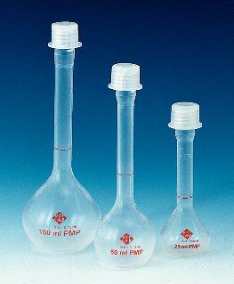 10mL Volumetric Flask^ GL18 screw cap included. Class B per DIN ISO 1042. Individually ring marked and calibrated. Constructed of polymethylpentene (PMP). Pack of 6.