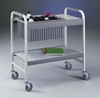Flexi-Bin Cart^ With 10" Deep Polyethylene Bin; (3) 20.25" & (4) 15.25" Dividers; Bottom Open Shelf; 4" Diameter Casters, 2 With Toe Locks; Full Factory Assembly; Extruded Rubber Handle Grips; Durable Epoxy-Coated 18 Gauge Welded Tubular Steel Frame; Supports 400 Lbs.; Lifetime Guarantee.