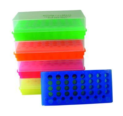 Rack^ Flipper* Junior with Lid, Fluorescent Assorted, 32 Position, Side one for 32 x 0.5ml tubes and 8 x 1.5/2.0ml, Side two for 32 x 1.5/2.0ml and 8 x 0.5ml tubes, Polypropylene.