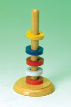 When stacked so they mutually repel, the rings appear to float on the support rod.