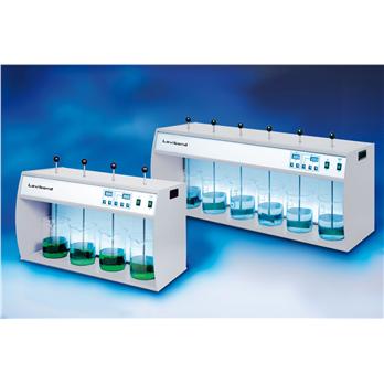 Specifications Flocculation Testers (also known as Jar Testers) are designed for a range of applications - such as testing the efficiency of flocculation or precipitation agents.Features:Continuously variable stirring speed (lab versions only)Digital display of stirring RPMTimer functionIlluminated back panelHeight adjustment option for the stirring blades during operationThomas No.1210K19Stirring places:4Stirring speed control:10 – 300 revolutions per minuteTimer (continuous):1 – 999 minutes or 16.5 hoursResolution:1 revolutionPower supply:100 – 240 V 50 – 60 HzWeight:approx. 13 kgDimensions: (mm)645 L x 347 W x 260 HEC-conformity:CEThomas No.1210K20Stirring places:6Stirring speed control:10 – 300 revolutions per minuteTimer:1 – 999 minutes or 0 – 99 hours (continuous)Resolution:1 revolutionPower supply:100 – 240 V 50 – 60 HzWeight:approx. 17 kgDimensions: (mm)935 L x 347 W x 260 HEC-conformity:CE