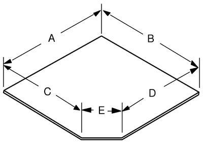 KEMRESIN* Flat Corner Cabinet Worktop^ For use with Corner Base Cabinets CFG-2169-10, CFG-2179-00, VFG-2169-00, or VFG-2179-00. Molded epoxy resin. Black, non-glare surface. 2.54cm thick with a 0.63cm molded radius on front edge. Dimensions (5 sides): 83.82x83.82x60.96x60.96x30.48cm.
