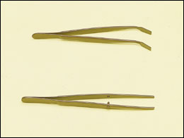 Cover Glass Forceps^ Straight, 114.3mm long. Full-length coating with brown flouropolymer resin containing FEP which complies with FDA regulations concerning direct food contact. Wide tip for lifting cover glasses.