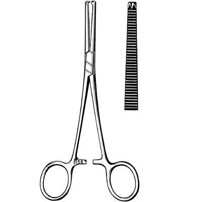 Rochester-Oshsner* Hemostatic Forcep^ 9 inch, Curved, Serrated, 1 x 2 teeth, Mid Grade Stainless Steel