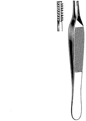 Adson Brown* Tissue Forcep^ 4-3/4 inch, 7 x 7 teeth, Side Grasping, Economy Grade Stainless Steel, Sterile, Individually Packaged, 50 per Case
