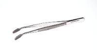 Steel forceps for grasping cover glasses feature bent ends., 02_BulletPoint: Stainless steel fabrication, Length: 114 mm (4½"), Cat. No.: 82027-390, Steel forceps for grasping cover glasses feature bent ends., 02_BulletPoint: Stainless steel fabricatio