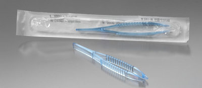 Laboratory Forceps^ With blunt tip. Disposable polystyrene. Sterile. Color: blue. Individually peel packed.