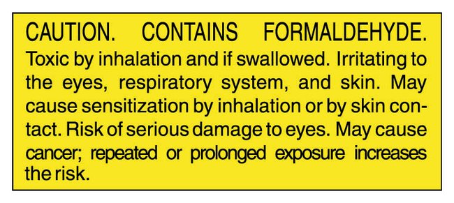 Formaldehyde Warning Labels, Bright yellow with black printing for vessels containing formaldehyde, Each