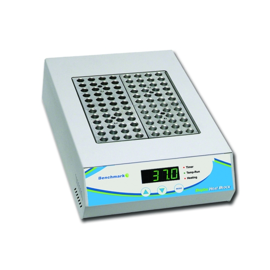 This Four Position BenchMark Digital Dry Bath offers digital control over both temperature and time, eliminating the need for an external thermometer or timer. The unit is extremely space efficient. The Four Position model can accommodate up to ninety-six 1.5mL microtubes in less than a square foot of bench space. The cavities of the high grade aluminum blocks are precision machined to match the conical size and shape of 0.5, 1.5, 2.0, 15 and 50mL tube sizes, providing unsurpassed temperature uniformity. Nine assorted blocks are available in total for compatibility with nearly all common tube sizes. Custom blocks are also available upon request. This Benchmark Dry Bath offers a built-in user recalibration function to guarantee long term temperature accuracy. The Dry Bath includes an easy-to-use block lifter with a temperature insulated handle for quick, convenient exchange of blocks even while they are still hot. Four Position unit holds four blocks at a time.Temperature range: ambient 5 to 150°C. Temperature resolution: 0.1°C. Temperature accuracy: /-0.2°C. Temperature increments: 0.1°C. Temperature uniformity: /-0.2°C. Timer: 1 to 999 minutes. Dimensions (W x D x H): 22 x 35.5 x 8cm (8.7 x 14 x 3.2 inches). Block dimensions: 7.6 x 9.5 x 5cm (3 x 3.75 x 2 inches). Chamber: fast heating aluminum. Operating temperature range: 4°C to 65°C. Electrical: 115V AC, 60Hz (Inquire for product in 230V, 50Hz). Warranty: 2 Years. Sold individually. Benchmark Scientific #: BSH1004.