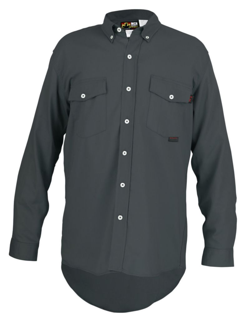 Work Shirt^ Work Shirt, Fr Gear Long Sleeve, Max Comfort* Series, Size: X2, Color: Gray,Material: Flame Resistant, 88% Cotton /12% Nylon, Sewn&Nbsp;With&Nbsp;Nomex*&Nbsp;Front Closure: Button, Chest: 50-52, Sleeve: 35.5-36, Back Length: 37.63, Nfpa 2112 Ul Certified, Astm F1506 Electric Arc Protectio