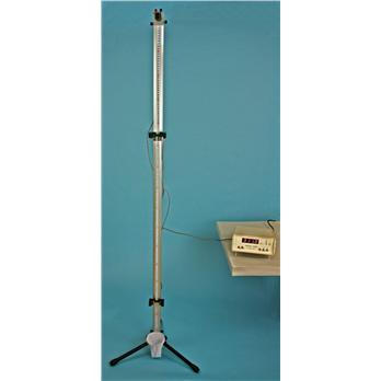 This convenient free fall apparatus for measuring the acceleration of gravity has a 150 CM fall length. It comes with an electromagnetic ball release, a pair of photogates on a long cable harness, two steel balls, a plumb line, a catcher , and an instructional manual. Requires the digital timer DTPHG1 (not included). More detailed 'available upon request. Shipping weight of FFA001: 5 Lbs., dimensions: 75 " x 6 " x 7 ".This four-digit timer is designed to be used with air tracks, free fall apparatus, and other equipment. It is microprocessor-controlled and offers eight programmed functions to record counts, time intervals, periods of oscillation, accelerations, acceleration due to gravity, and velocities in collisions. It comes with two photogates. An instructional manual is included. More detailed 'available upon request.