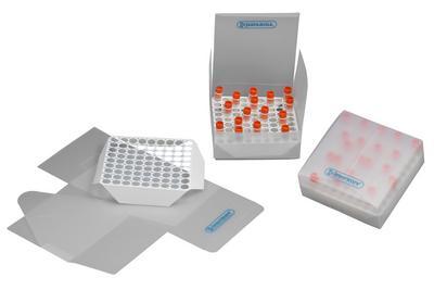 Freezer Box Pop Up^ Freezer Box Pop Up 2inch, With 81-place indexed divider, Cryo Storage, Fits standard 2inch freezer storage racks, Withstands temperatures as low as -86degree celcius, Will not stick, warp, or discolor, Reusable, Ships and stores flat, Translucent polypropylene, Holds 81 vials