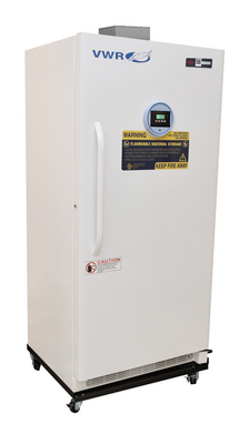 Freezer^ Flammable Materials Storage Freezer with Digital Display, 30 cubic feet, thermostat, right-hinged door, 2 fixed 1 adjustable shelf, door lock, meets NFPA guidelines 45 & 70, UL listed.