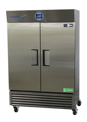 Freezer^ Stainless Steel Freezer with Digital Display, 49 cubic feet, 2 swinging solid doors, hydrocarbon refrigerant, two year warranty