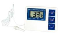 * Dual Display, Alarm with Duration Counter, AAA (2) batteries, and a 1 m (3.3') probe cable length; Cat. No.: 98000-208; W×H: 40×19 mm (1.6×0.7"); calibration points: 0, 50 °C; accuracy: ±1 °C; probe: 30 mm (1.2") waterproof sensor (2); range: –40/70°C (–40/158°F) External, –40/70°C (–40/158°F) External; resolution: 0.1°C/°F.