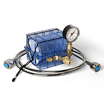 Economical Block Dry Ice Maker for On-DemandEasy to set up and use, this compact device saves the time and expense of receiving a dry ice delivery. Can be attached to a liquid CO2 cylinder (not included) equipped with a dip tube to produce a ready-to-use 250 to 350 gram block of dry ice in only a few minutes.Each 50lb. cylinder makes from 10-16 blocks of dry iceDry ice production can be viewed through the transparent polycarbonate body that secures without clamps, screws or tools ensuring easy removal of the solid block of dry ice and disconnection from the CO2 cylinderLightweight body is never as cold as the dry ice, even when filled; allows safe transport of the unit and contents when wearing appropriate glovesRugged nickel-plated "pigtail " connects it to the CO2 cylinder valve which is used to regulate gas flowOperates at very low pressure (displayed on the built-in dial gauge); incorporates multiple pressure relief safeguardsIncludes a 1.8m (6ft) nickel-plated copper connecting tube with standard CGA 320 thread coupling for easy attachment to a LCO2 cylinder