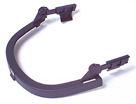 Bracket For Hard Hats^ Lightweight Plastic Bracket Fits Everest Wide Brim Hats Only. Bracket Accommodates Oris* Earmuff Systems. Bracket'S Cam Lock System Accepts A Wide Range Of Faceshields.