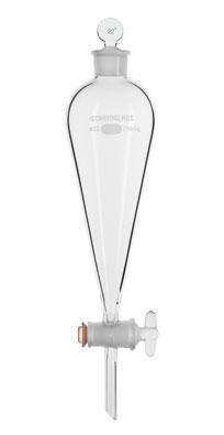 FUNNEL, SEPARATORY, SQUIBB, GLASS STOPCOCK^ 3000ml. Stopcock Size: 8; Stopper Size: 38. Squibb style separatory funnel with a glass stopcock. Supplied complete with a flask length stopper of the listed size. For replacement stoppers see CG-3018.