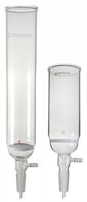 FUNNEL/COLUMN, QUICK SEPARATION^ Joint size: 24/40. Desc Size: 30mm; Height Above Disc: 12in. (305)mm. For performing quick separations using a vacuum source. All funnels have a lower standard taper inner joint with a sealed in drip tip and an outlet for connection to a vacuum source.