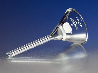 PYREX brand, Hirsch Type, Fritted Disc, Funnels^ 75 mm. 139 mm. 8 x 70 mm. Porosity:M. 30 mm. This type is very useful in preparation work, or in making separations where it is necessary to wash the precipitate and redissolve with chemicals which would attack filter paper.