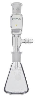 FILTER APPARATUS^ Funnel Only, Coarse Porosity. Useful for direct filtration applications of small volumes under vacuum. Complete apparatus consists of a Buchner funnel with 14/20 top outer and lower inner joints, and a 50ml Erlenmeyer having a 14/20 outer joint.