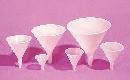 Flexible Funnel^ Polypropylene. Top I.D. 68mm. Stem O.D. 9.7mm. Stem Length: 20.2mm. Thin, flexible. Ribbed to permit air to escape as fluid flows in. Color: Translucent white.