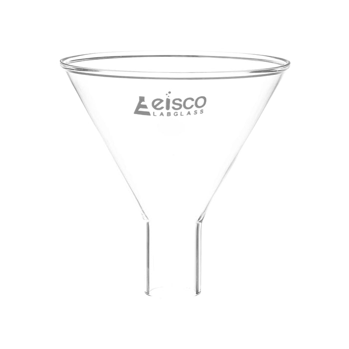 ull; Powder funnel made of high quality borosilicate 3.3 glass • 60º angle funnel with plain stem • Funnel measures 4" (100mm) in diameter • Total length of funnel measures 4.0" (102mm), and stem measures 1.25" (32mm) long • Stem has an inner diameter of 21mm, and an outer diameter of 26mm Eisco Labs Borosilicate glass has the following heat tolerances: Strain Point -515°C | Annealing Point 565°C | Softening Point 820°C. Eisco Labs proudly manufactures its own products using state-of-the-art equipment, and following the highest standards of quality control. Each product is carefully designed by a team of laboratory professionals and experienced engineers with quality and durability in mind. They are manufactured with only the highest grade raw materials and according to international quality standards to ensure that they can withstand use in even the toughest laboratory environments.