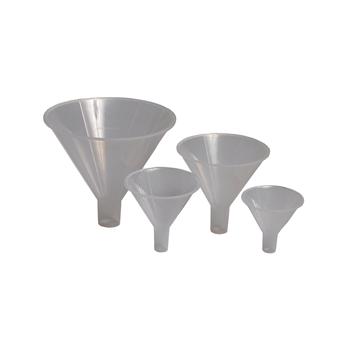 Polypropylene funnels have short, wide stems for convenient use with powders.Autoclavable