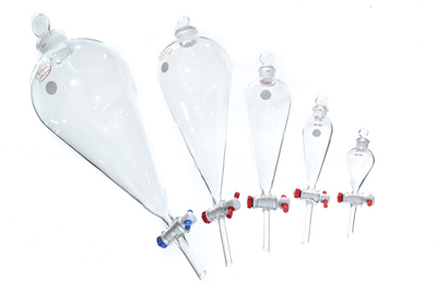 Separatory Funnel, Squibb, PTFE Stopcock^ Capacity: 60mL. Stopcock Size: 2. Stopper Size: 16. Squibb separatory funnel with polytetrafluoroethylene (PTFE) stopcock. Supplied complete with glass pennyhead flask length stopper of the size listed.
