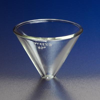 PYREX brand, Plain, Stemless, Funnels^ 100 mm ID. 82 mm. Of molded construction with bottom ground flat; for use in the sugar industries. All have 6mm opening. PYREX brand funnels are mechanically strong, chemically inert and thermally stable, making them idel vessels for handling liquids or solids.