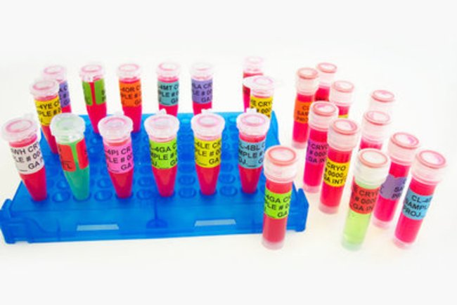 Cryogenic plastic labels for long-term storage in liquid nitrogen and deep-freezing harsh environments for biomedical research and clinical laboratories. Cryo labels accept desktop laser printing and permanent marker. Temperature Range: From -196C to 120C Sheet size: 8.5" x 11" 216mm x 279.4mm; Label Size 1.28" x 0.5"; Pink