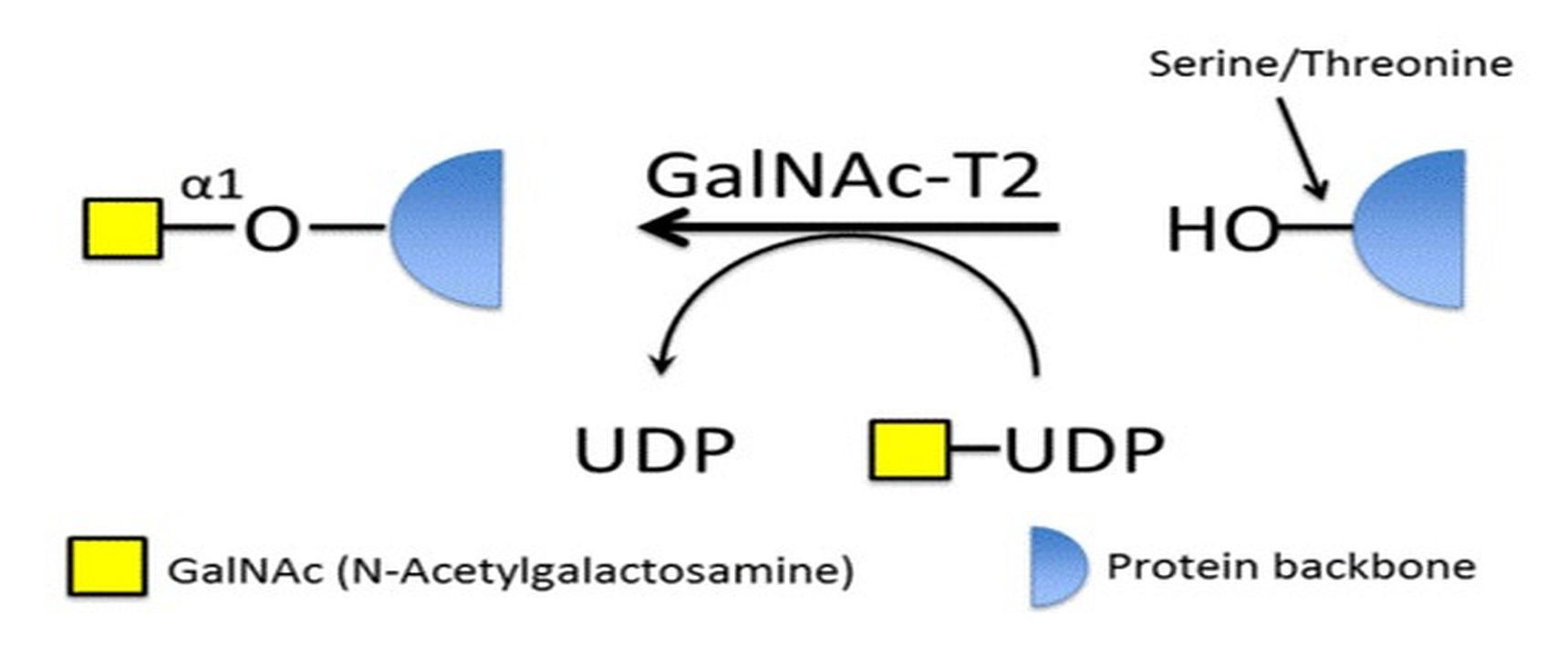 GalNAc-T2, soluble fragment 5ug^ GalNAc-T2, soluble fragment, Source Insect cells, Species: Human, Purity by SDS-PAGE > 90%, Biological Activity Specific activity >300 pmol/min/ug, Synonyms: Polypeptide N-acetylgalactosaminyltransferase 2, Polypeptide GalNAc transferase 2, GaNTase 2, SIze: 5ug