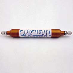 Oxiclear* Disposable Inline Gas Purifier^ For Gas Chromatography And More. Reduces Oxygen To<50Ppb, Water, And Organic Compounds From Inert Carrier Gases. 34 To 42M3 Capacity. Maximum Pressure: 250Psi. Maximum Flow Rate: 5L/Minute. Polished Aluminum Cylinder. 6.35Mm Brass Compression Fittings.