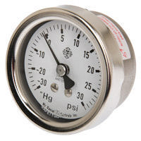 Vacuum/Pressure Gauge 30in Hg/15 psi^ Replacement Combination Vacuum/Pressure Gauge, 2-inch vacuum/pressure gauges, 316 stainless steel with 1/8in NPT fitting and center back mount, 30in Hg/15 psi
