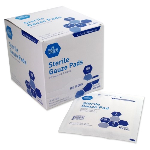 Gauze Pad Sterile - 1's, 4x4 - 12 Ply - 12/100/cs. (1200)