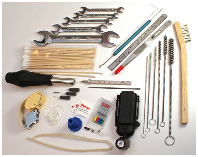 Maintain the performance of your GC system with Thermo Scientific™ GC Tool Kits. Wrench sets, a flashlight, brushes, a minidrill set, and other tools are included. Kits are available for Thermo Scientific GC and Agilent™ GC instruments.FeaturesReplacements included perform like original instrument partsParts list included for easy reorderingIncludes:Capillary instrument gauge, liner cap removal tool, open-end wrenches in 6 x 7mm, 8 x 10mm and 16 x 17mm sizes.
