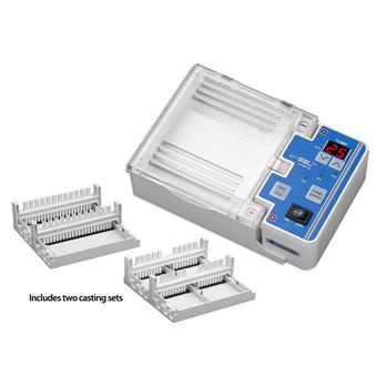 Specifications The Accuris myGel Mini electrophoresis system includes all of the equipment that you need to get up and running - gel tank, power supply and two casting sets. Ideal for personal use, small laboratories or the classroom, this gel box/power supply combination is compact and easy to use.The myGel mini gel box attaches directly to the power supply for a secure connection everytime. Selectable parameters include 3 preset voltages - 35V, 50V or 100V - and a 99 minute timer. All are set using the memberane keypad.The safety lid is vented to help dissipate heat generated during electrophoresis, and features a viewing area above the gel. Current will only run through teh system when the lid is properly in place on top of the gel box.Trays and casting stands for both 10.5 x 6cm and 5 x 6cm gels are included with the myGel Mini system, as are double-sided combs. The smaller tooth combs are compatible with multichannel pipettes. Casting is quick and easy - just place the tray in the casting stand and pour. The trays feature a dark contrast strip to help visualize wells while loading and lines that fluoresce under UV and blue light to track progress of the run.Complete system, includes gel box power supply and casting setsQuick and easy gel casting, no clamps or spacers requiredCompact design, footprint: 7 x 5.1 in.Output Voltage35V, 50V or 100VTimer0-99 min. or Cont.SafetyLid interlockMax. Buffer (mL)230Gel CapacityOne: 10.5 x 6cm Two: 5 x 6cmWeight1 lbs / 0.45 kgDimensions7.5 x 5.1 x 2.1 "Electrical115V or 230V, 50-60Hz