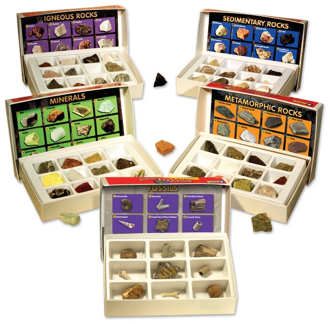 Each collection features a selection of hand-picked specimens chosen for color, texture and beauty. Also contains a four-color identification chart, self-adhesive labels, handy storage tray and an information-packed guide.Individual kits can be found at www.fishersci.edu.