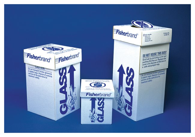 Sturdy glass disposal box manufactured from corrugated cardboard supplied with polyethylene liner bags. Fisherbrand™ Glass-Disposal Boxes keep glass waste separate from other waste.