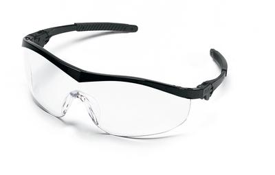 Storm* Safety Glasses^ Black frame. Clear lenses with DURAMASS* AF4 anti-fog coating. Ratchet-action temples. Non-slip rubber head-grips. Wrap-around lens constructed of lightweight, scratch-resistant polycarbonate. Meet ANSI Z87.1 standard for optical clarity and impact resistance.