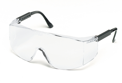 Safety Glasses^ Tacoma* safety glasses with black temples and uncoated clear lenses.