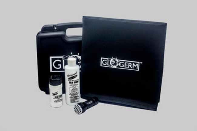 Glo Box Kit 1006 With Gel. The Glo Box Has Been Redesigned As A Soft Shell, Foldable Box That Will Allow You To Do Demonstrations In Brightly Lit Surroundings. Designed To Block Ambient Light And Provide A Vivid Display Of Our Simulated Germs. The Glo Box Kit Contains One 8 Ounce Bottle Of Glo Germ Gel, One 4 Ounce (1.9 Ounce By Weight) Glo Germ Powder, A 21 Led Uv Flashlight (Batteries Included, The Fold Flat Glo Box And Our Hard Plastic Carry Case.