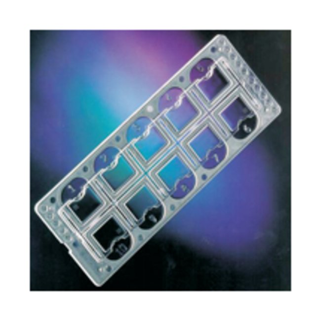 Combination slide and coverslip of optically clear acrylic with ten separate chambers, each holding a standard volume of 6.3μLTen processed and stained specimens can be read at a timeEach chamber contains 18 premeasured circles that contain specific volumes of urinary sediment within its circumferenceChambers facilitate a convenient and rapid microscopic examination of the cellular elements in each specimenCapillary action provides uniform distribution of sediment into the viewing chamberEach chamber has overflow wells for excess urine to prevent cross contaminationIndividual slides and specimens can be identified by marking the appropriate numbers on the extreme left and right side of the unit