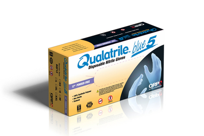 Powder Free Glove^ 5 mil, powder-free, 12 in length, ambi., textured palm and fingers, beaded cuffs. 100/box; 10 boxes/case.