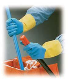Neoprene Unsupported Gloves^ 19 mil., blue neoprene over yellow latex, double dipped, flock lined, raised diamond grip, 12 inch . Straight cuff. Raised diamond grip. Excellent glove for janitorial and general maintenance. X-Large.