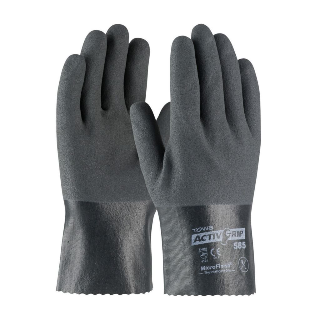 ActivGrip* Glove XL^ ActivGrip* Glove with Cotton Liner and MicroFinish* Grip, Material: Nitrile/cotton/polyester, Color: Gray, Cuff Style: Open cuff, Construction: 15 gauge seamless cotton/polyester liner, Dimension: 25.0 x 12.5 (palm) in, Application: Oily parts, metal handling, Size: XL