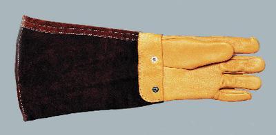 Heavy-Duty Leather Gauntlets^ (PRO-HDGSM) Small. Full-fingered, full-length gauntlets are ruggedly constructed with internal seams for optimum durability and protection . Glove portion is made from top grain cowhide. Cuff is elbow-length and made from split grain cowhide.