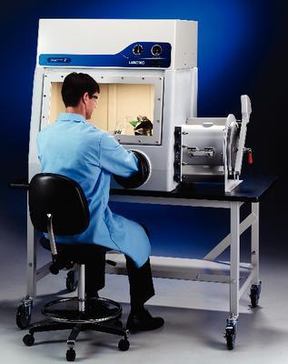 Controlled Atmosphere Glove Box^ Glove Box, Controlled Atmosphere, Precise*, has main chamber of one-piece, chemical-resistant polyethylene, transfer chamber, laminated safety glass window, light, neoprene gloves, 4 main chamber and 2 transfer chamber val