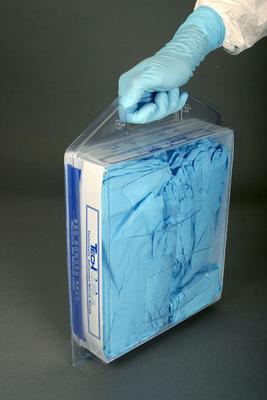 Glove Nitrile Sz S Tote The Technitote^ Is a plastic clamshell dispenser of Class 100 nitrile gloves for use in applications requiring a clean, portable dispenser. The TechniTote was developed in response to ISO 14000 life cycle concerns for reduced packaging.