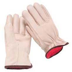 Glove, Insulated Leather^ Fleece/Foam Lined Driver Grain cowhide full leather. Gunn cut, straight thumb. Red fleece over foam lining. Medium